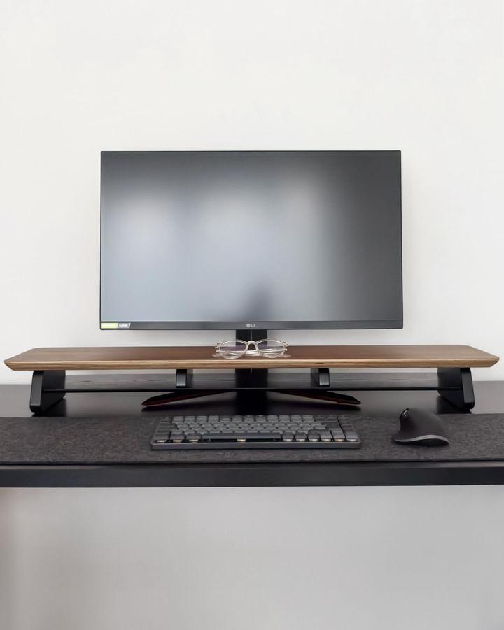 This wooden laptop stand, made of plywood and covered with American walnut, oak veneer, is perfect for placing on a table and will raise the screen to eye height, which will relieve tension from your neck.